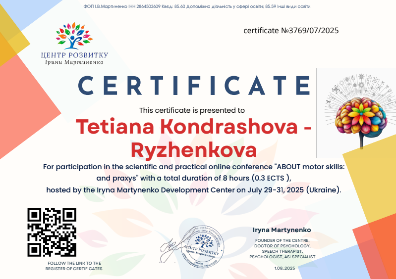 В своей работе я использую современные методы психологии: арт-терапию, песочную терапию, сказкотерапию, нейропсихологические подходы и специальные педагогические приёмы. Эти методики помогают ребёнку лучше понимать себя, выражать эмоции, развивать речь, внимание и воображение.