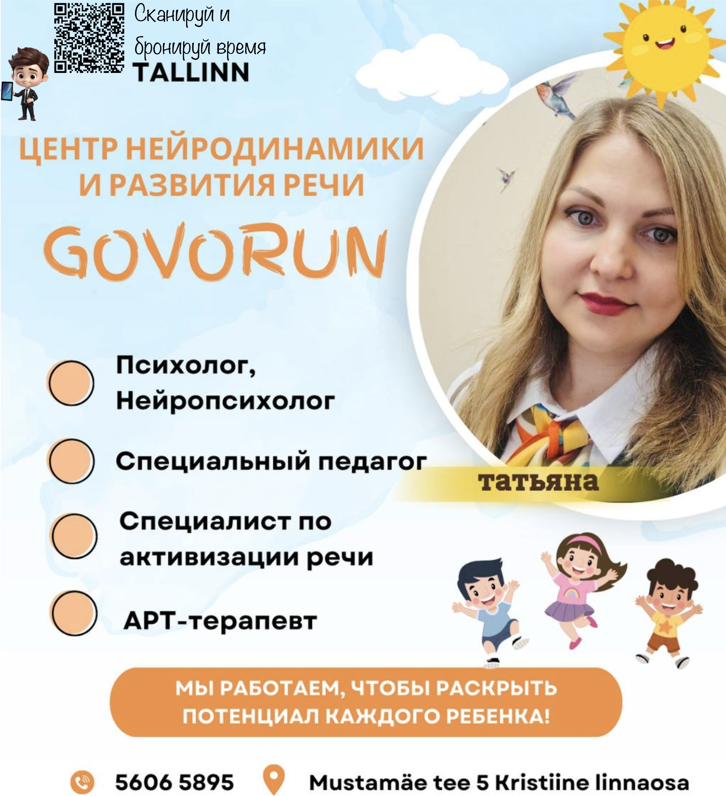 Имею высшее психолого-педагогическое образование. Опыт работы с детьми дошкольного и школьного возраста, а также с детьми с особыми потребностями более 10 лет.